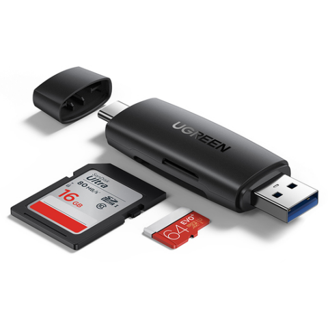 внешний кардридер, подключение через USB 3.0, USB Type-C, поддержка карт SD, TransFlash (TF)