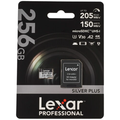 Карта памяти 256Gb MicroSD Lexar Professional Silver Plus + SD адаптер (LMSSIPL256G-BNANG)