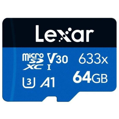 Бренд: Lexarкарта памяти, microSDXC, 64 Гб, чтение: 100 Мб/с, 633 x, интерфейс: UHS-I (SD 3.0), класс скорости: U3, C10, V30, A1