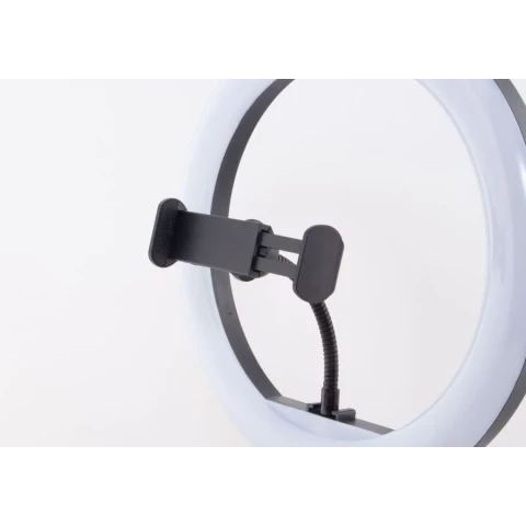 кольцевой осветитель диаметром 305 мм, 162 светодиода, регулировка цв. температуры: 2800/4800/6500 К, шнур питания с пультом и USB-разъёмом, держатель для смартфона, студийная стойка 160 см