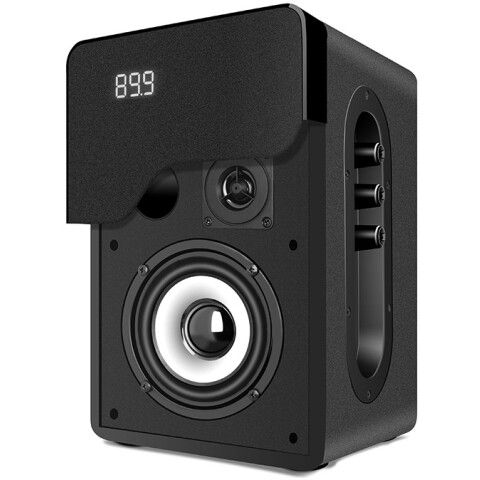 компьютерная акустика стерео, мощность 40 Вт, диапазон частот: 40-22000 Гц, корпус из MDF, питание от сети, разъём для наушников, радиотюнер, пульт ДУ