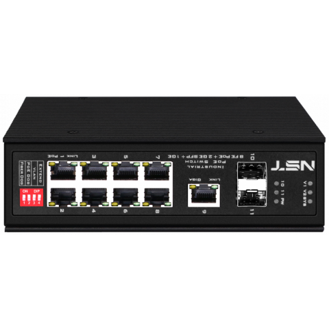 промышленный неуправляемый коммутатор, 8 портов Ethernet до 100 Мбит/с, 1 порт Ethernet до 1 Гбит/с, 2 порта SFP до 1 Гбит/с, поддержка PoE