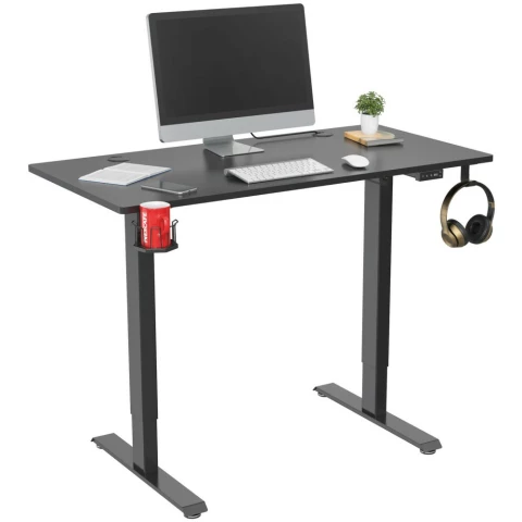 компьютерный стол, материал столешницы: МДФ, металлический каркас, нагрузка до 80 кг, регулировка по высоте, подстаканник, держатель для наушников, отверстия для кабелей