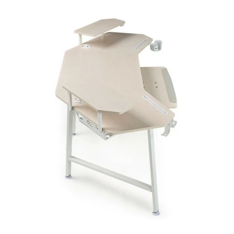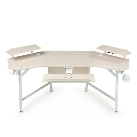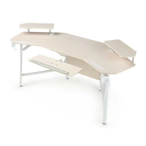компьютерный стол, материал столешницы: ЛДСП, металлический каркас, подстаканник, держатель для наушников, полка для клавиатуры, отверстия для кабелей, полка для монитора, держатель для геймпадов