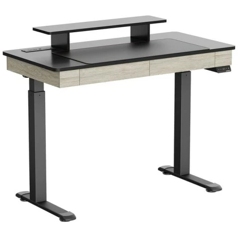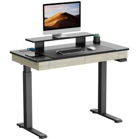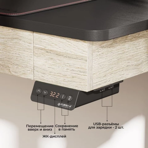 компьютерный стол, материал столешницы: ЛДСП, металлический каркас, нагрузка до 100 кг, регулировка по высоте, отделение для аксессуаров, полка для монитора, 2xUSB-разъём, беспроводная зарядка