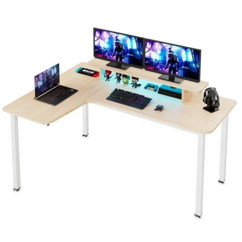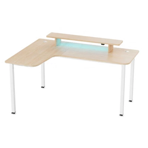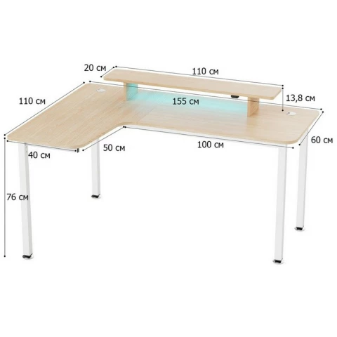 компьютерный стол, материал столешницы: дерево, металлический каркас, регулировка по высоте, подсветка, полка для монитора