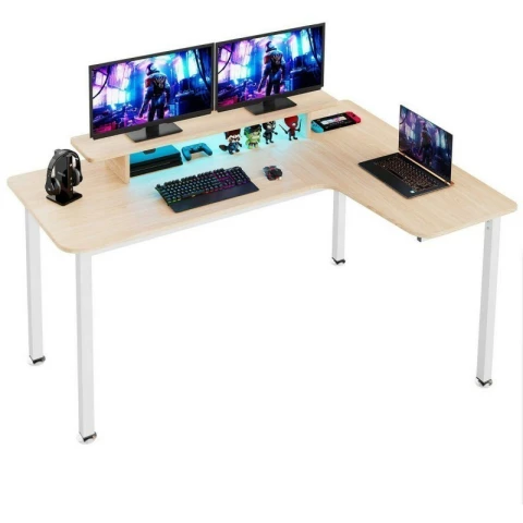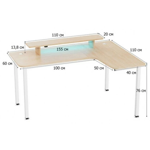 компьютерный стол, материал столешницы: дерево, металлический каркас, регулировка по высоте, подсветка, полка для монитора