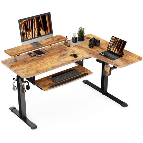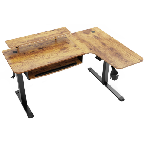 компьютерный стол, материал столешницы: ДСП, металлический каркас, нагрузка до 100 кг, регулировка по высоте, подсветка, подстаканник, держатель для наушников, полка для клавиатуры, полка для монитора, USB-разъём