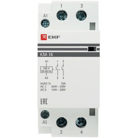 контактор на DIN-рейку, напряжение: 400 В, номинальный ток: 16 A, контакты: 2НО, IP20
