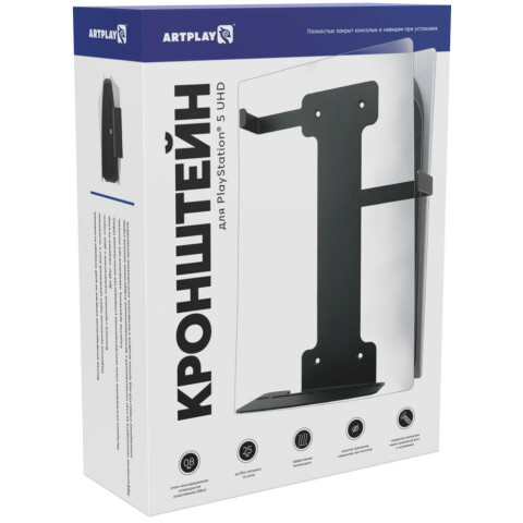 кронштейн для PlayStation 5 UHD (версия с blu-ray приводом), для крепления на стене, практически полностью скрывается консолью, сохраняет легкий доступ ко всем разъемам
