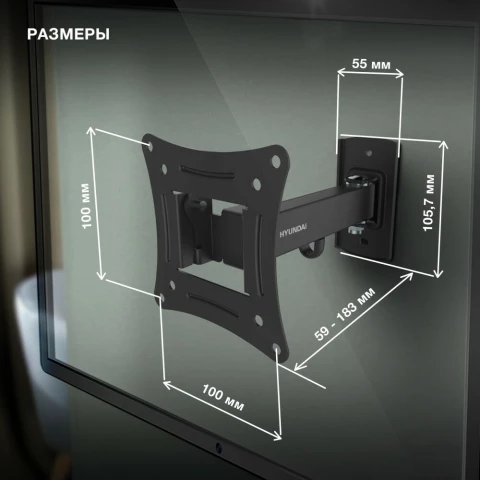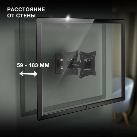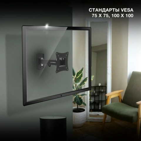 для телевизора/панели, настенный, 10-27", до 15 кг, выдвижной, наклонный, поворотный, чёрный