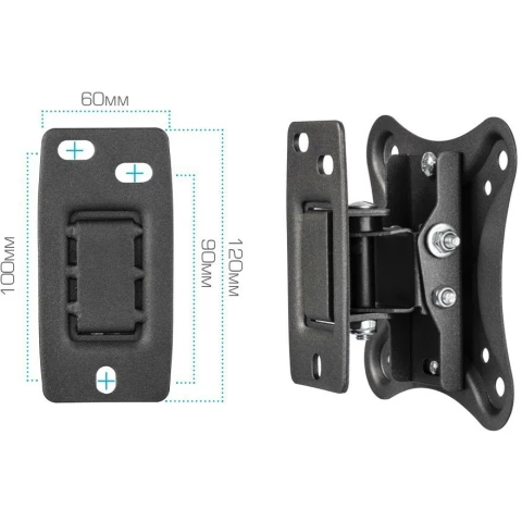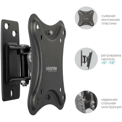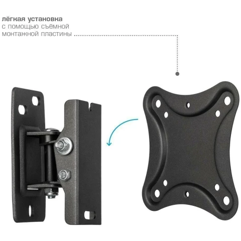 для телевизора/панели, настенный, 10-34", до 25 кг, наклонный, поворотный, чёрный
