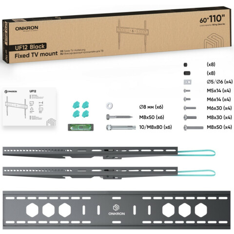 для телевизора/панели, настенный, 60-110", до 120 кг, фиксированный, чёрный