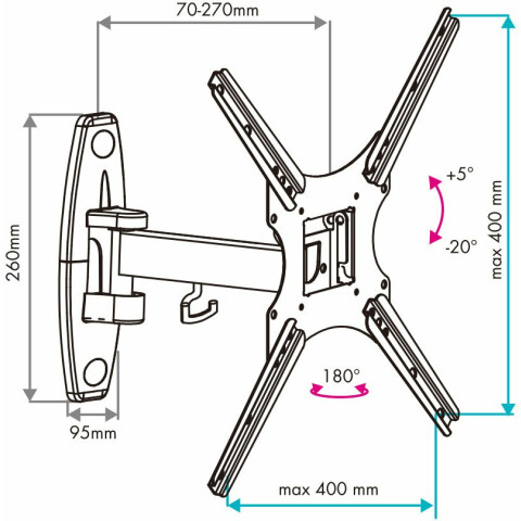 для телевизора, настенный, 20-55", до 25 кг, выдвижной, наклонный, поворотный, чёрный
