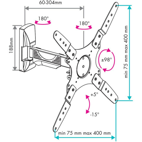 для телевизора, настенный, 20-55", до 25 кг, выдвижной, наклонный, поворотный, чёрный