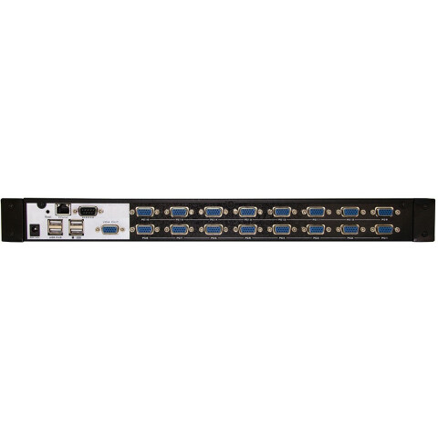 16-портовый переключатель KVM-over-IP с портами VGA, 4 портами USB, 1 портом 10/100Base-TX и встроенной консолью