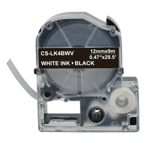 картридж для ленточных принтеров, ширина 12 мм, длина 9 м, белый на чёрном фоне, совместим с Epson LW300/LW400/LW700/LW600P/LW1000P/K400/Z700/Z900