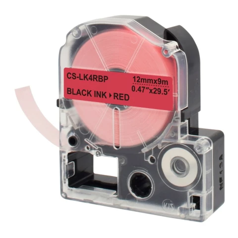 картридж для ленточных принтеров, ширина 12 мм, длина 9 м, чёрный на красном фоне, совместим с Epson LW300/LW400/LW700/LW600P/LW1000P/K400/Z700/Z900