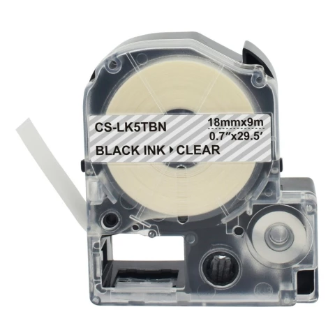 картридж для ленточных принтеров, ширина 18 мм, длина 9 м, черный на прозрачном фоне, совместим с Epson LW300/LW400/LW700/LW600P/LW1000P/K400/Z700/Z900