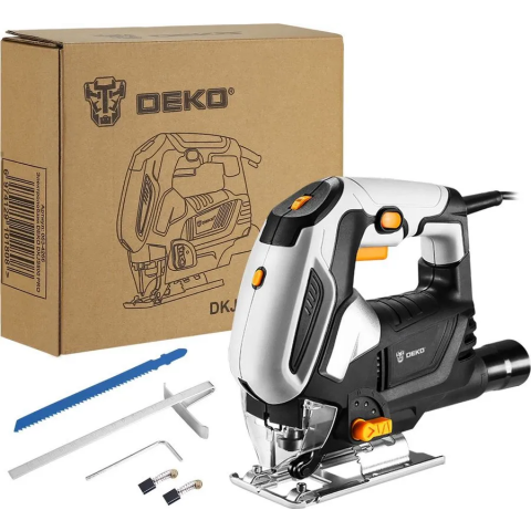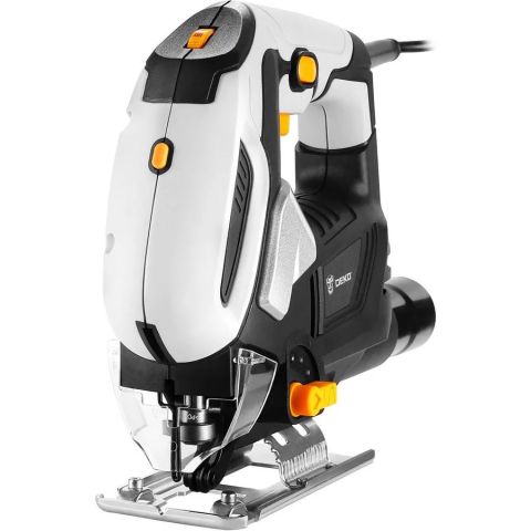 питание от сети, мощность 800 Вт, скорость 3000 ходов/мин, маятниковый ход, регулировка частоты хода