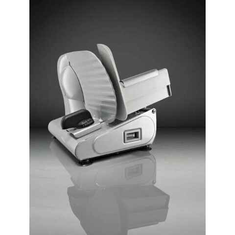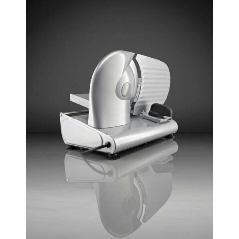 ломтерезка, максимальная толщина нарезки до 15мм, мощность: 160 Вт, волнообразный нож, защита ножа: защитный кожух, суппорт для продуктов с защитой пальцев, материал корпуса: металл