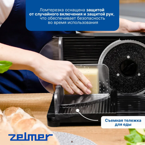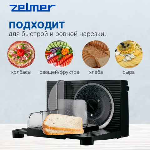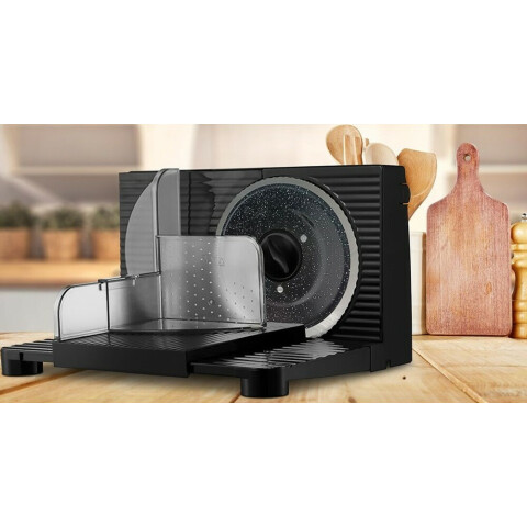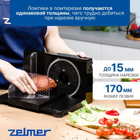 ломтерезка мощностью 150 Вт, толщина нарезки: 0-15 мм, пластиковый корпус, защита пальцев и защита от случайного включения