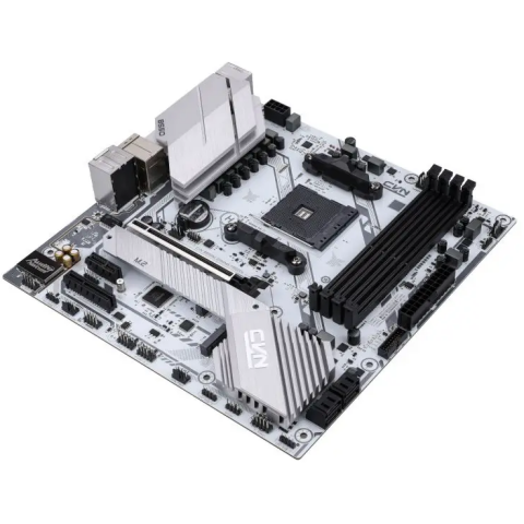 сокет AM4, чипсет AMD B550, 4xDDR4, PCI-E 4.0, 2xM.2, сеть: 2.5 Гбит/с, DVI, HDMI, mATX