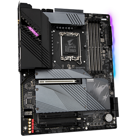 Бренд: GigabyteLGA 1700, Intel Z690, 4xDDR5, PCI-E 5.0, 2500 Мбит/с, Wi-Fi, Bluetooth, 3xUSB 3.2 Gen1, 2xUSB 3.2 Gen2, USB 3.2 Gen2x2 Type-C, HDMI, DisplayPort, подсветка, ATX
