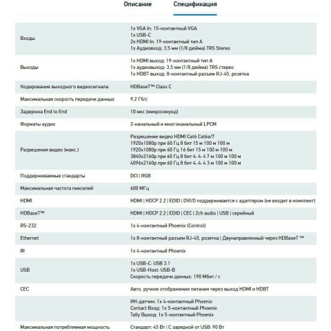 презентационный коммутатор с 4 входами 4K/60 HDBaseT, с DSC, масштабированием и хост-портом USB (4K: 100 м)
