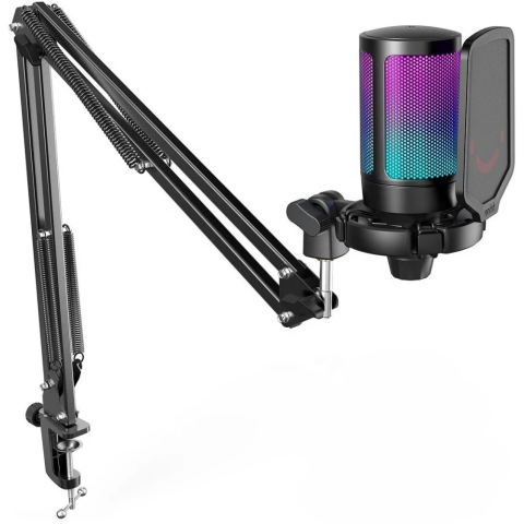 настольный микрофон, конденсаторный, кардиоидный, 60-18000 Гц, подключение через USB, USB Type-C, кабель 180 см, подсветка, крепление на стол/монитор