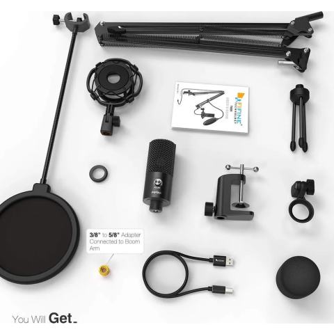 настольный микрофон, конденсаторный, кардиоидный, 20-20000 Гц, подключение через USB, кабель 250 см, гибкая ножка, крепление на стол/монитор