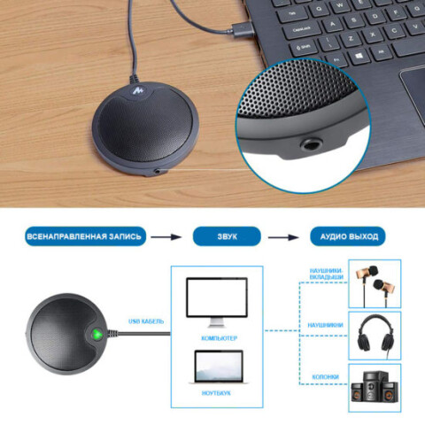 настольный микрофон, конденсаторный, всенаправленный, подключение через USB, кабель 150 см
