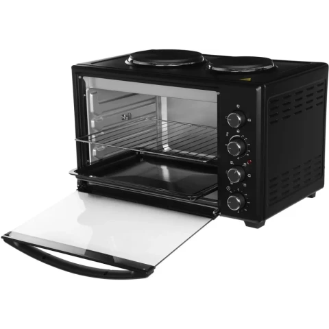 мощность 1600 Вт, объём 45 л, макс. температура 250 °C, 5 режимов работы, механическое управление, гриль, конвекция, вертел