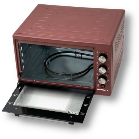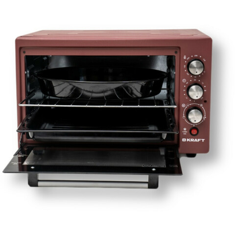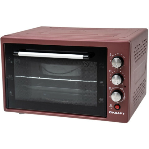 Бренд: KRAFTмощность 1500 Вт, объём 45 л, макс. температура 320 °C, 6 режимов работы, механическое управление, конвекция
