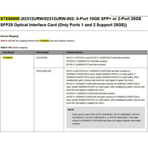 плата коммуникационная 8-port 10GE SFP+ or 2-interface 25GE SFP28 optical interface rear card (only 1/2 port supports 25GE