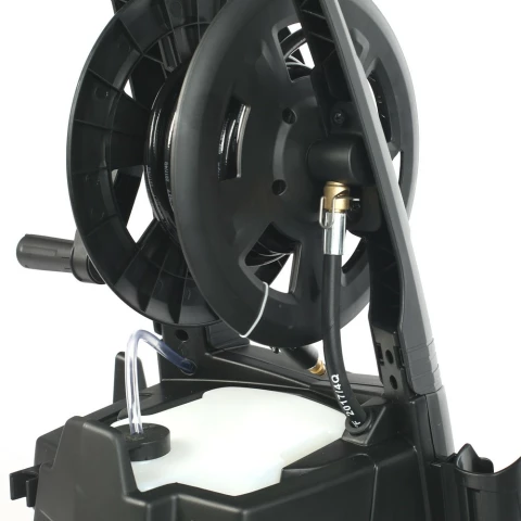 потребляемая мощность 2.2 кВт, давление 150 бар, производительность 450 л/час, длина шланга 7 м