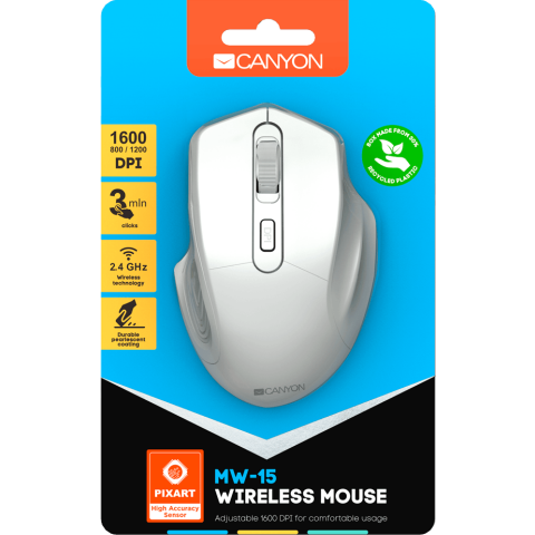 Бренд: Canyonоптическая, беспроводная (радиоканал), 1600 dpi, USB, цвет: белый
