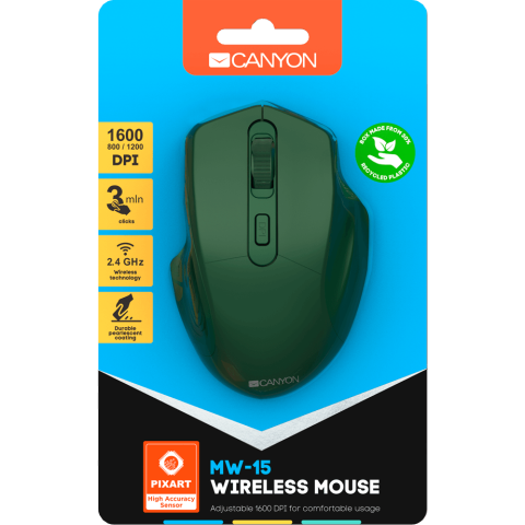 Бренд: Canyonоптическая, беспроводная (радиоканал), 1600 dpi, USB, цвет: зелёный