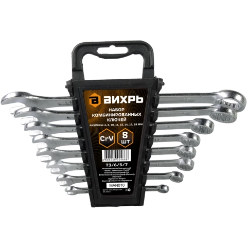 комбинированный, количество ключей: 8, размер ключа: 6 мм, 8 мм, 10 мм, 12 мм, 14 мм, 17 мм, 19 мм, 11 мм