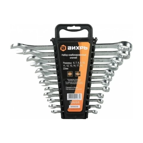 комбинированный, количество ключей: 12, размер ключа: 6 мм, 8 мм, 7 мм, 9 мм, 10 мм, 12 мм, 14 мм, 17 мм, 19 мм, 22 мм, 11 мм, 13 мм