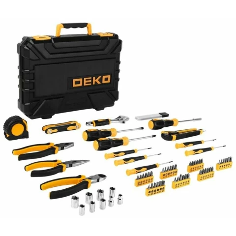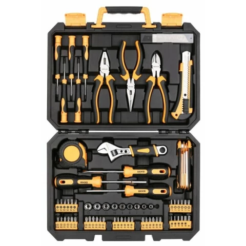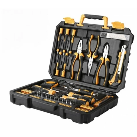 инструменты: отвёртки, рукоять для бит, плоскогубцы, длинногубцы, отвёртки для точных работ, бокорезы, ключ разводной, ключи имбусовые (шестигранные), оснастка: биты, торцевые головки, аксессуары: нож, рулетка