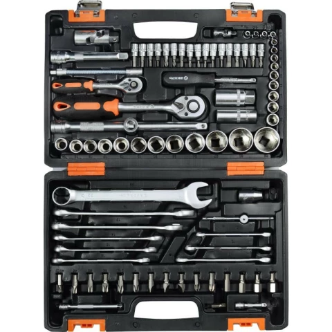 автомобильный набор инструментов, количество предметов в наборе: 82 шт, присоединительный размер: 1/2", 1/4", размер торцевых головок: 4-32 мм, кейс