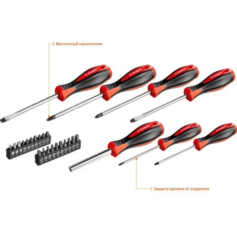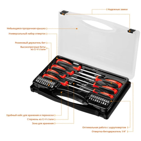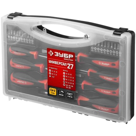 набор отвёрток, кол-во предметов: 27 шт, Phillips (PH), Pozidriv (PZ), Slotted (SL), Torx (T, Tx), шестигранный (HEX), магнитный наконечник, кейс (сумка)