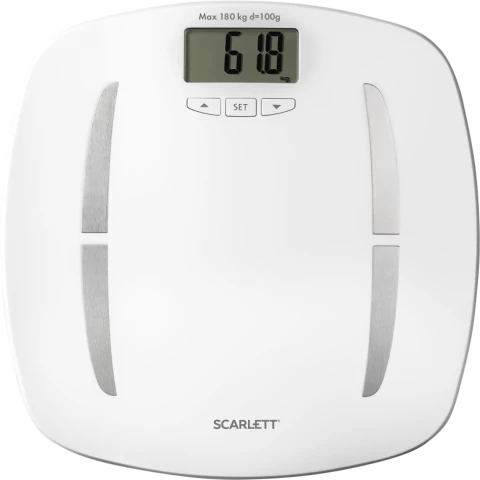 Бренд: Scarlettэлектронные весы, нагрузка до 180 кг, материал платформы: пластик, диагностика, автовключение, автовыключение