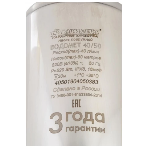 погружной, скважинный, производительность 2.4 куб. м/час, макс. напор 50 м, глубина погружения 30 м, чистая вода