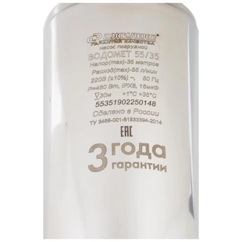 погружной, скважинный, производительность 3.3 куб. м/час, макс. напор 35 м, глубина погружения 30 м, чистая вода