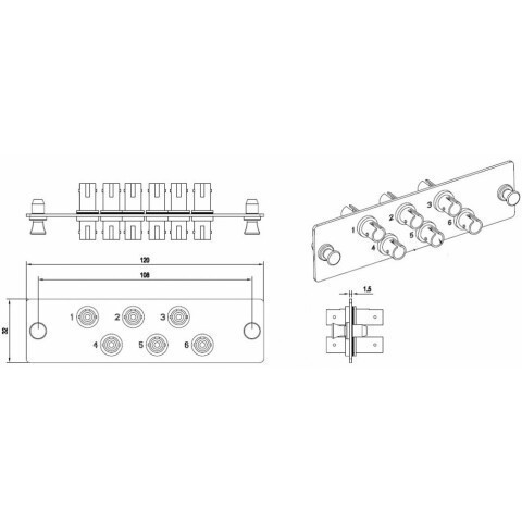 панель для FO-19BX с 6 ST адаптерами, 6 волокон, многомод OM2/OM3/OM4, 120x32 мм