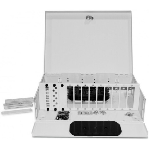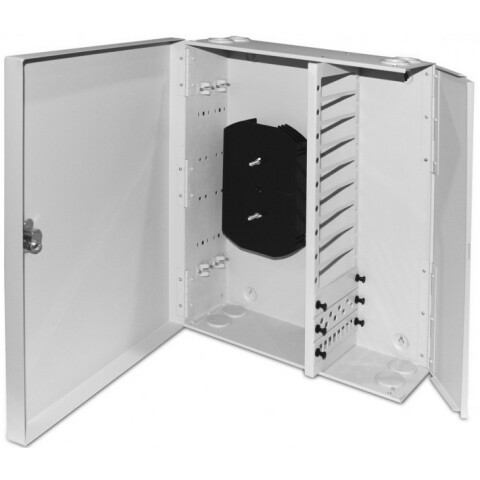бокс оптический универсальный настенный, от 8 до 96 портов (SC, duplex LC, ST, FC), со сплайс пластиной, без пигтейлов и проходных адаптеров, серый