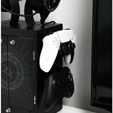 органайзер для 4 контроллеров приставок и гарнитуры, в шкафчик помещается до 10 дисков