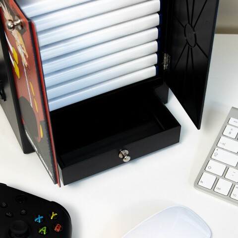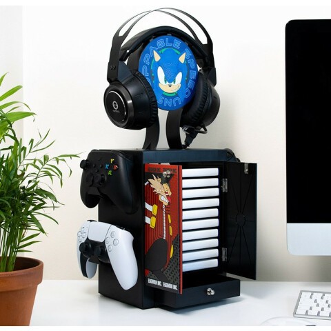 органайзер для 4 контроллеров приставок и гарнитуры, в шкафчик помещается до 10 дисков